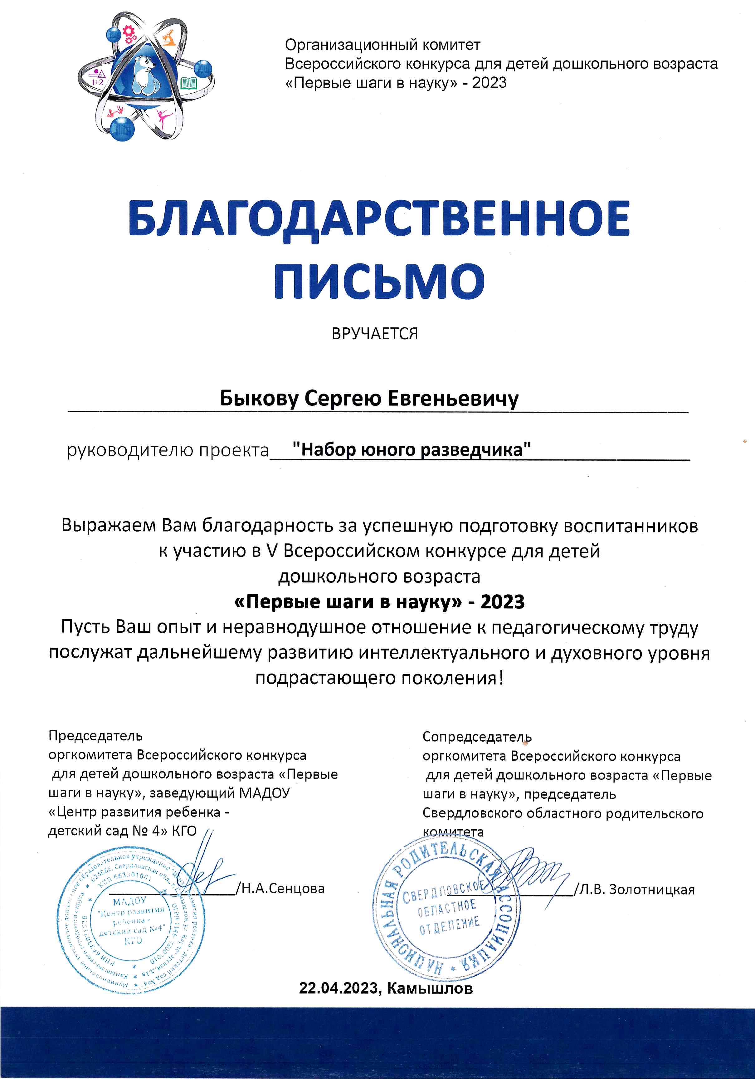 V Всероссийский конкурс для детей дошкольного возраста «Первые шаги в науку» - 2023 (подготовка финалиста конкурса)
